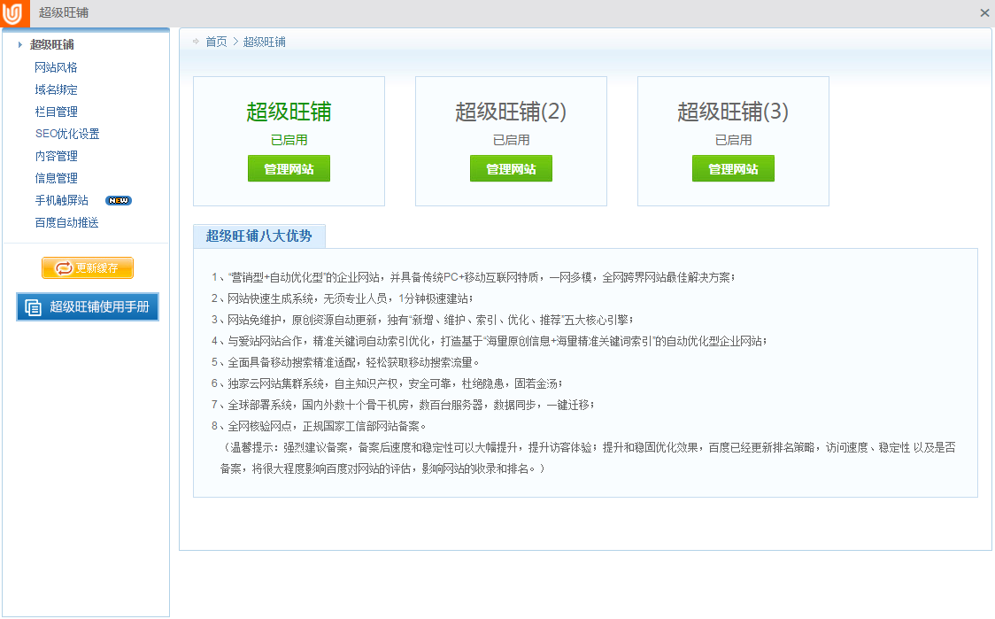介紹頁面左側自帶“超級旺鋪使用手冊”,可參考查閱。